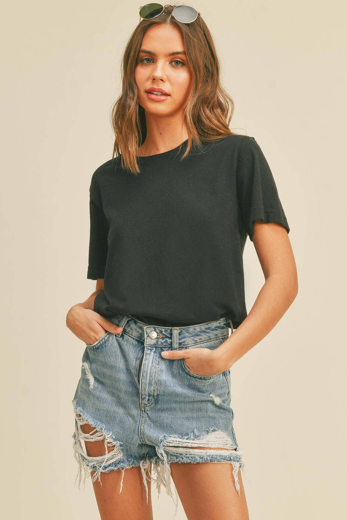 Available in White, Navy, and Black, this versatile tee will quickly become your go-to wardrobe foundation.