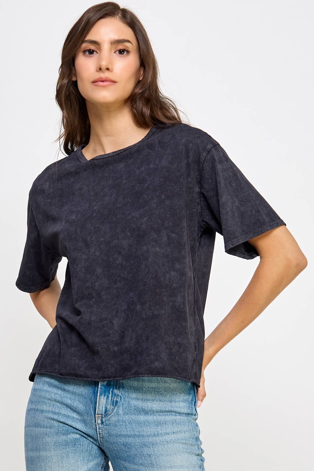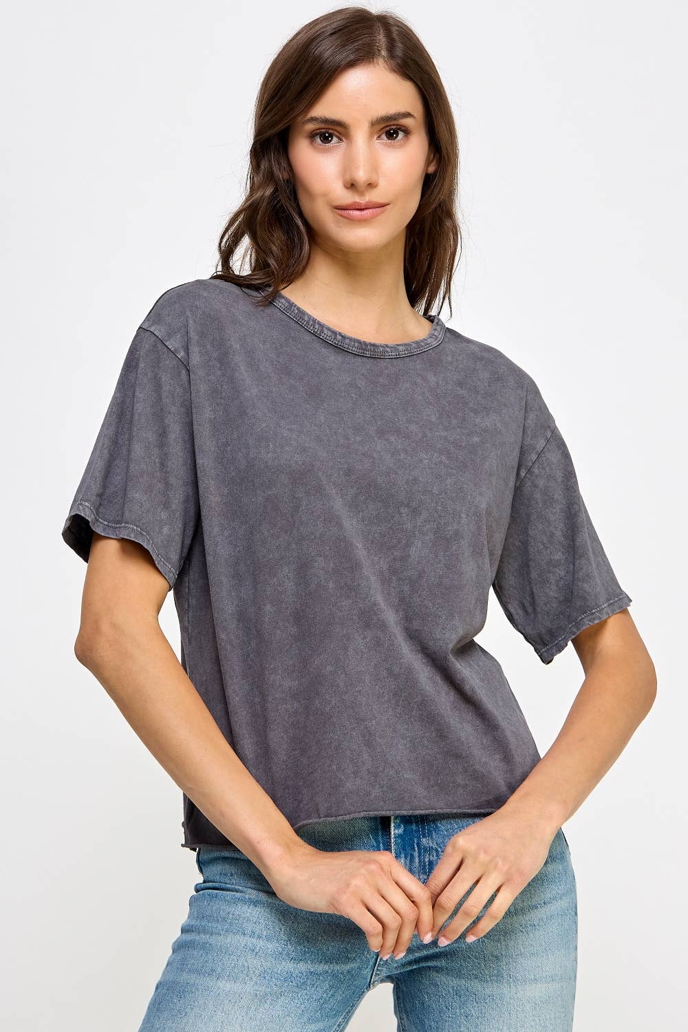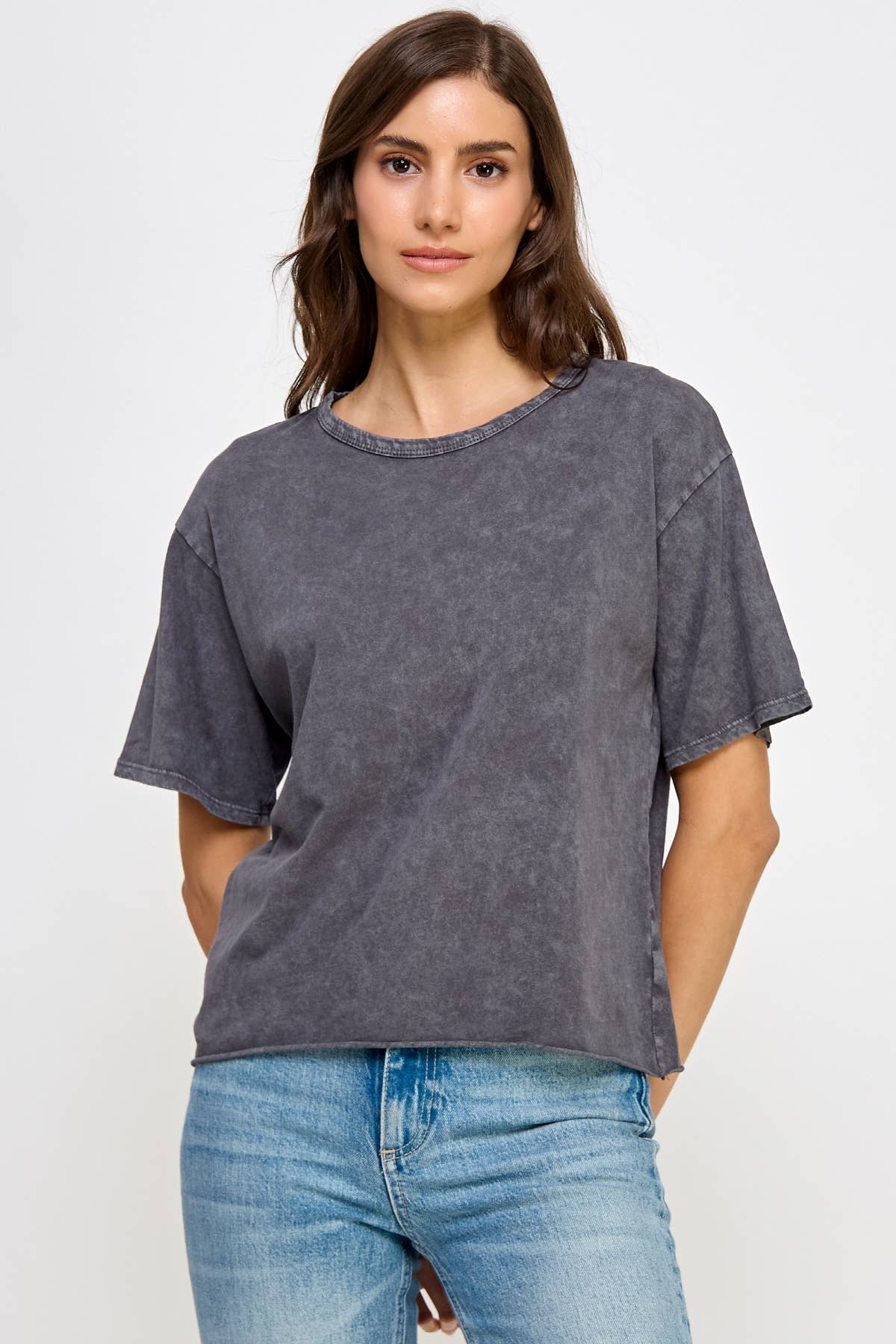 Mineral Washed Long Cropped Short Sleeve T-Shirt - 100% Cotton