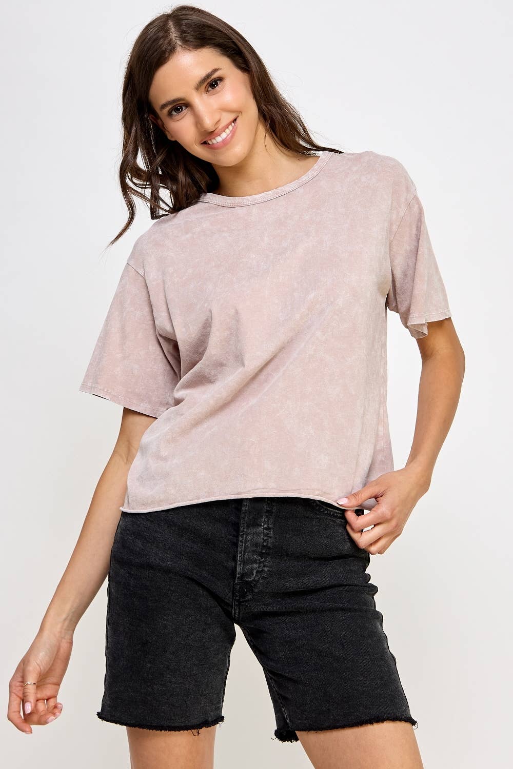 The Washed Everyday Tee combines casual ease with a vintage edge. Made from soft, breathable fabric, this relaxed-fit t-shirt features a mineral-washed finish for that perfectly worn-in look. The muted mauve tone adds a feminine twist to your everyday basics. Ideal for layering or wearing solo with your favorite jeans, shorts, or joggers, this tee is a must-have staple for off-duty days.